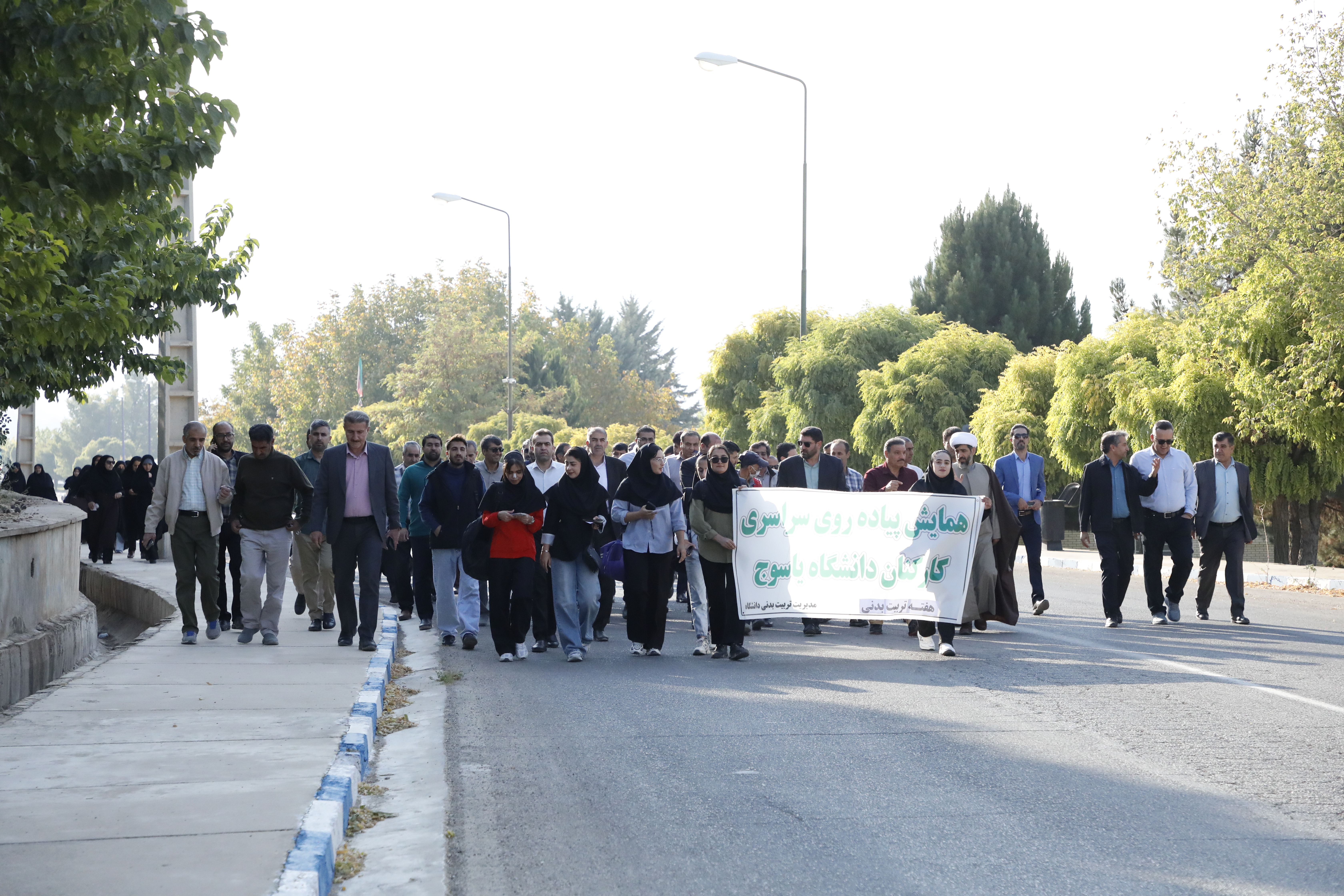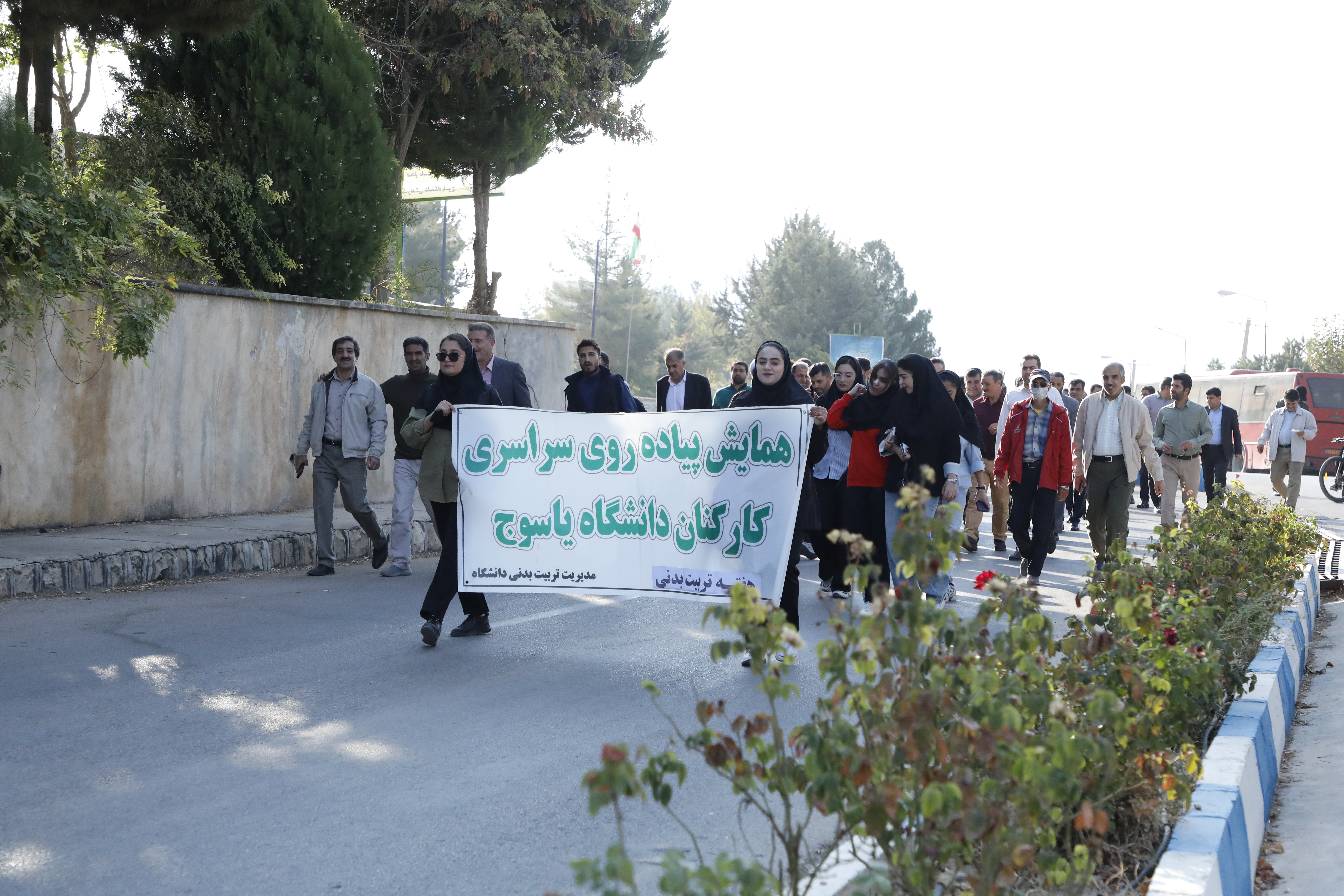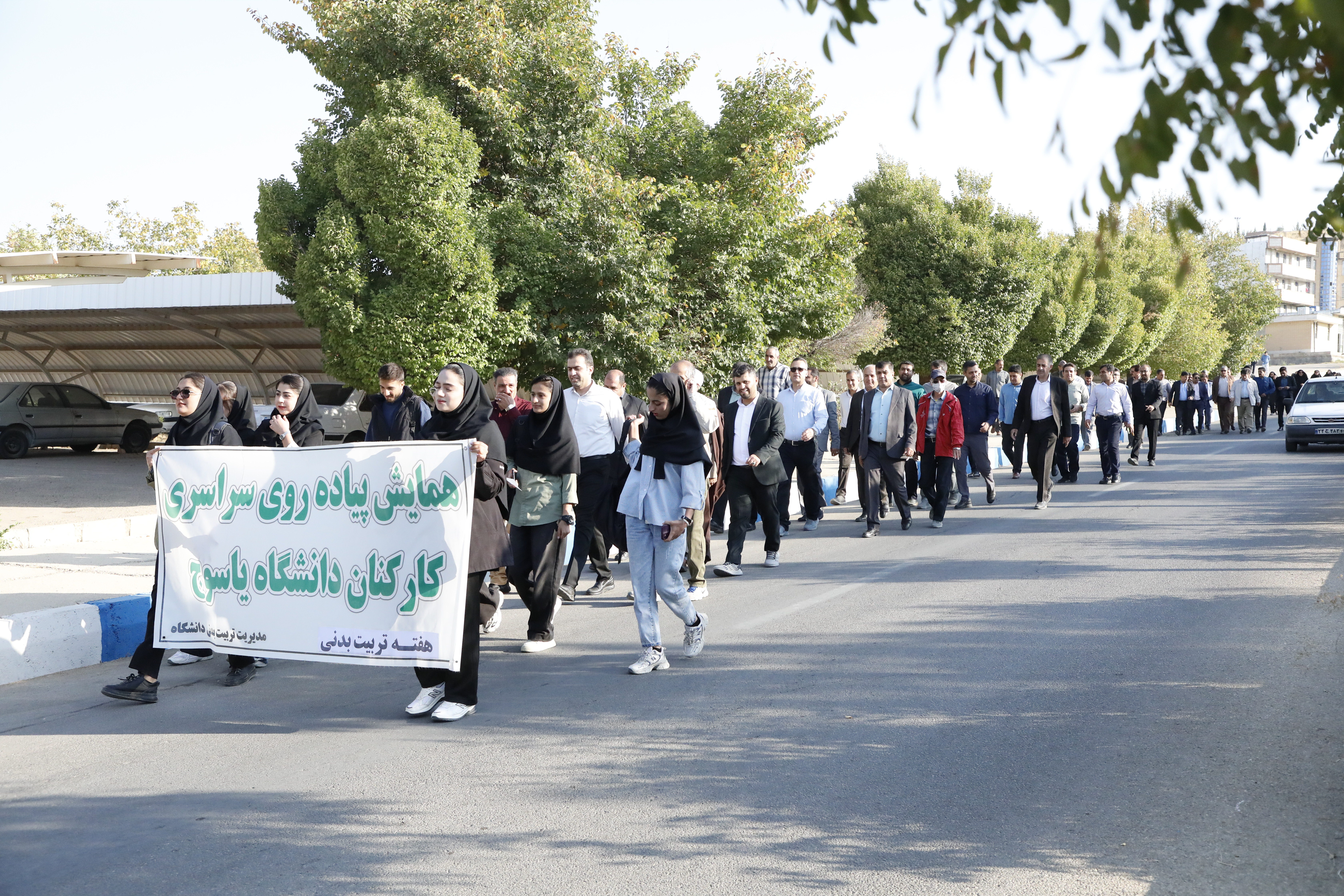 به مناسبت هفته تربیت بدنی و ورزش، همایش پیاده روی همگانی در دانشگاه یاسوج برگزارشد .