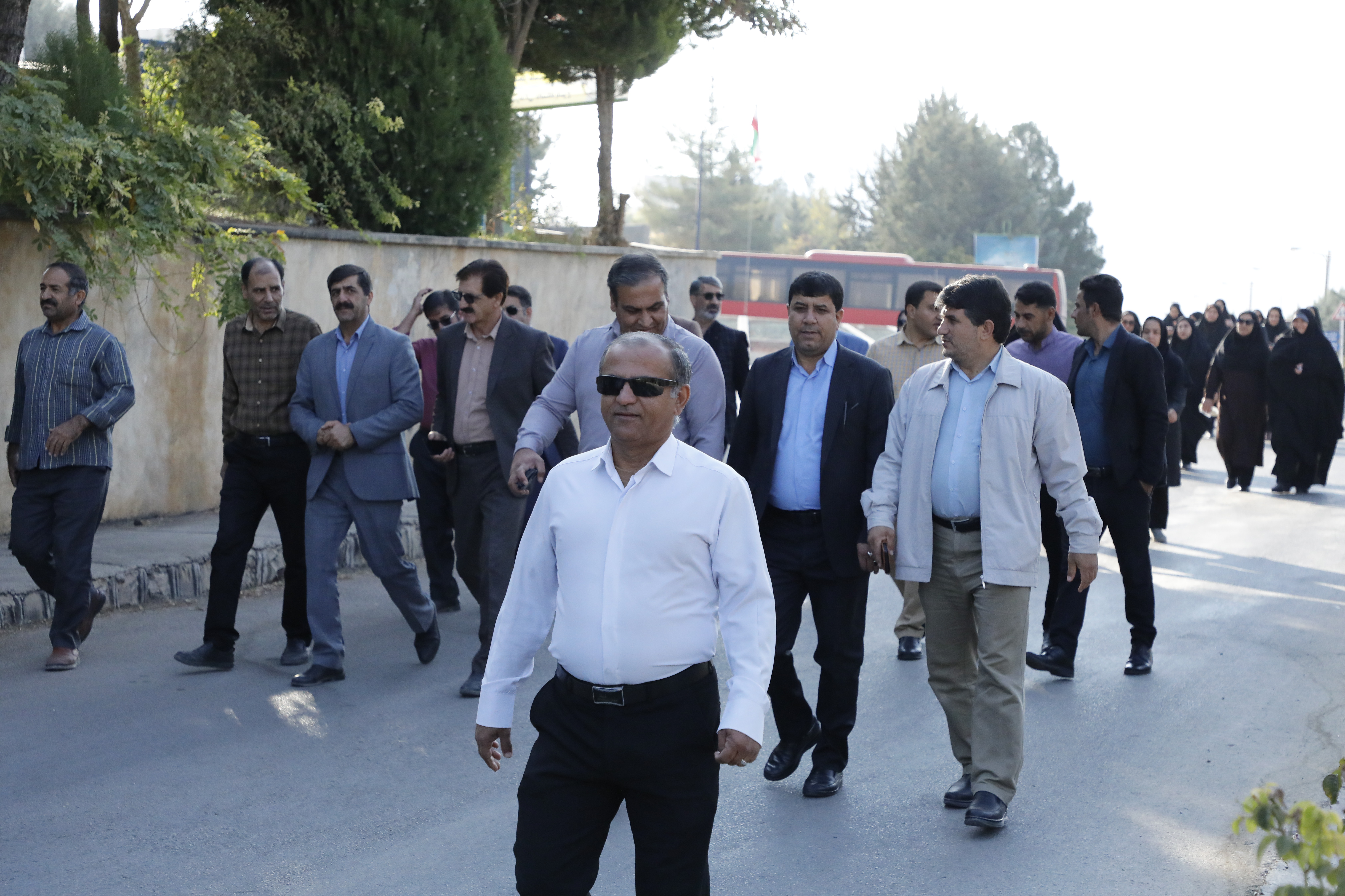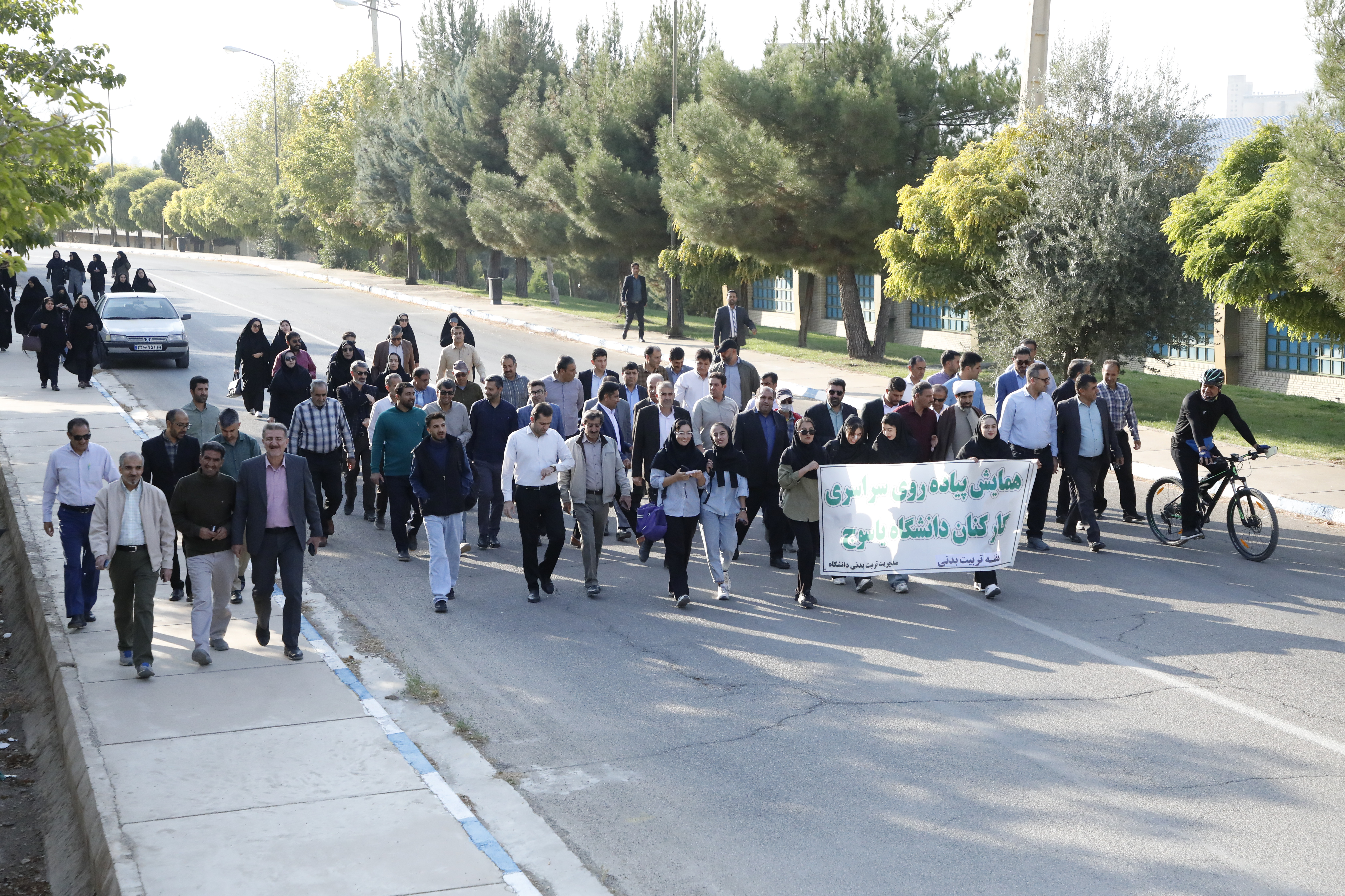 در این راه پیمایی که با همت معاونت دانشجویی و اداره تربیت بدنی دانشگاه برگزار شد بعد از انجام نرمش های ورزشی، دکتر سعادتیان رئیس اداره تربیت بدنی دانشگاه، ضمن خوشامد گویی به همکاران و دانشجویان ، عرصه ورزش را محیطی مناسب جهت همبستگی، اتحاد و همدلی همکاران و ضامن سلامتی بیان کردند و از برگزاری برنامه های متنوع ورزشی در هفته تربیت بدنی و ورزش خبر دادند.