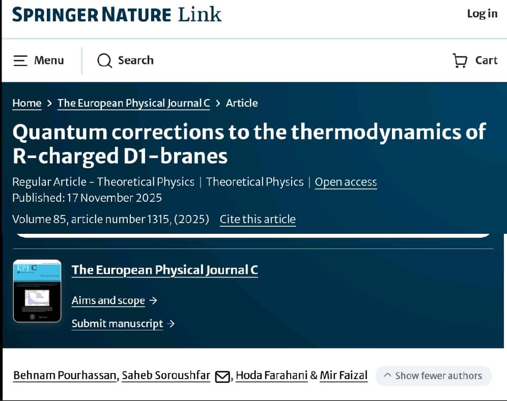 به گزارش روابط عمومی دانشگاه، در پژوهشی پیشگامانه تیمی از فیزیکدانان نظری از جمله دکتر بهنام پورحسن، دکتر صاحب سروشفر( عضو هیئت علمی گروه فیزیک دانشگاه یاسوج) ، دکتر هدی فراهانی از ایران و دکتر میر فیضل از کانادا به بررسی رفتار ترمودینامیکی غشاءهای باردار در چارچوب نظریه ریسمان پرداختهاند. این غشاءها اجرامی نظری هستند که در انرژیها و میدانهای گرانشی شدید، مانند شرایط نزدیک به سیاهچالهها یا در نخستین لحظات عالم، نقش مهمی دارند.